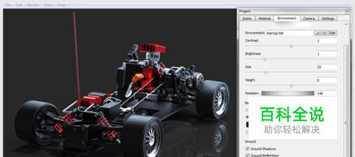 KeyShot阴影反射效果是我们的对象放在一个地平面的状态。在项目窗口(project window )的环境选项( environment tab)中,如下图所示。