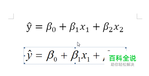 在符号列表里面选择β,然后将光标下移到小的虚线框内,输入数字0 接着我们 使用同样的方法输入整个公式