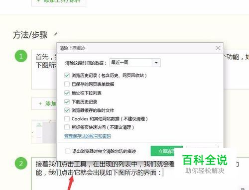 接着,我们就可以进项选择,是清楚最近一周的还是过去一个小时的呢,有自己决定,但是需要提醒大家的是清楚的时候不要清楚后面写了建议不清除的,如下图所示: