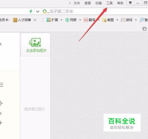 首先,我们打开一个浏览器,在最上边的菜单中,我们找到工具这个功能,如下图所示: