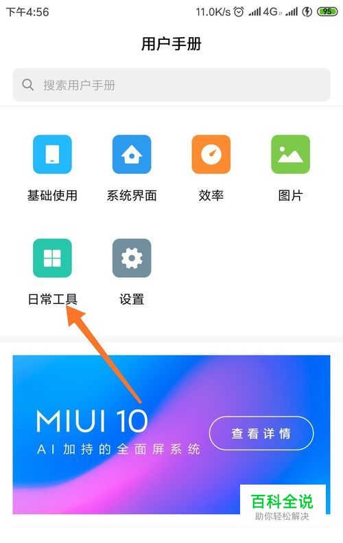然后,我们点击进入用户手册中的日常工具,如下图所示。点击即可。