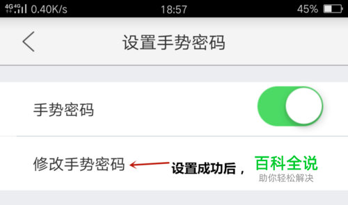 在手势密码管理页面,点击开启手势开关,然后连接九宫图案,绘制两次即可设置成功,如图所示