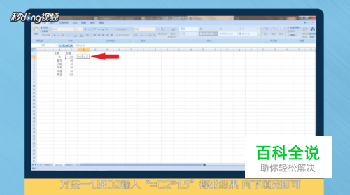 方法一:在D2单元格中输入=C2*1.5,得出结果后向下填充。
