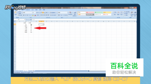 方法二:在E2单元格中输入1.5,按Ctrl+C复制。