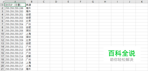 第二,由于原始数据将要统计的样本数据进行清洗,从而的到我们要进行统计的数据源。这里要注意的是,互联网数据经常会有非格式化的无序数据。这种时候,更加重视数据的清洗操作。在本案例中,通过Excel自带的筛选功能对非一线城市的访问来源(海外/合肥)进行过滤。在此注意,在研究行业,根据不同统计规则,成都一般会被列为一线城市。