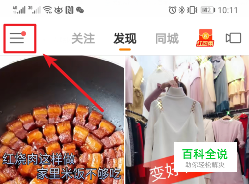我们打开快手应用进入后,在快手的主界面点击最上方三条横杠的图标。