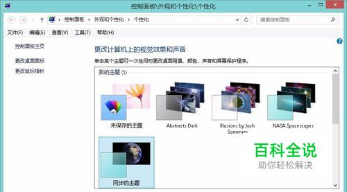 在桌面右键,左击"个性化",打开"控制面板\外观和个性化\个性化",点击"更改鼠标指针"
