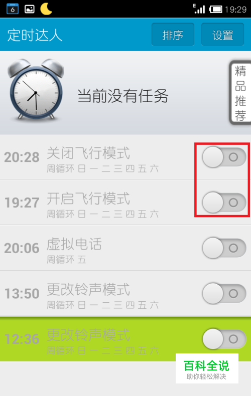 设置完后,点击“保存”即成功建立一个定时开启飞行模式的任务,想到我们还要自己手动再关闭飞行模式也麻烦的话,那么你可以再设定一个定时关闭飞行模式的任务呵: