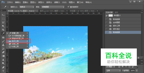按住鼠标不要松开,沿着海面边缘拉出一条直线;