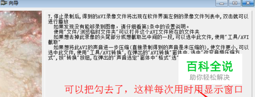 那我们就按照向导一步一步来操作吧,向导里有许多录制的视频格式 我们可自己来选择操作 因为每次打开这个软件都会显示这个窗口,当然我们也是可以设置不要打开的 把勾去了,就可以了,然后关闭