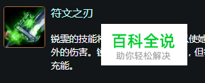 被动技能 : 符文之刃: 锐雯的技能将为她的剑刃充能,以使她的下一次普通攻击造成额外的伤害。锐雯最多可以充能3次,但每次攻击只会消耗掉一层充能。
