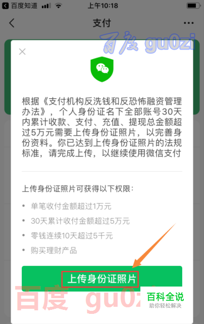 这时如果是拥有多个微信号的朋友,又收付金额比较多的话,就会弹出个人身份证名下全部账号30天内累计……的提示。 这样要继续使用支付功能,就必须上传身份证照片了,