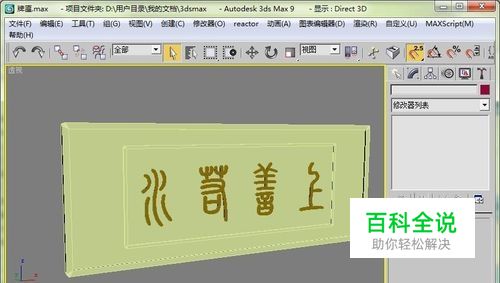 然后就可以看到立体的牌匾效果了。 在此说一下如果你的3dmax中没有汉仪篆书繁这个字体,那就去下载一个,然后安装到电脑字体里。