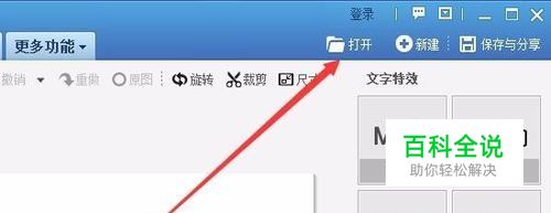 首先在电脑上打开美图秀秀,然后点击右上角的“打开”按钮。