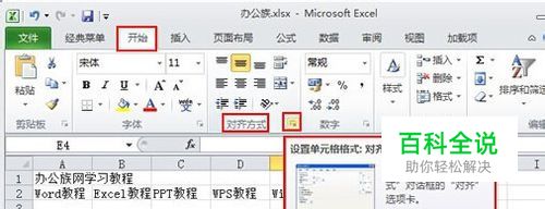 在“开始”功能栏中找到“对齐方式”这一选项,点击“设置单元格格式”按钮。