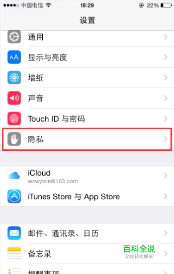 找到“隐私”并点击进入。