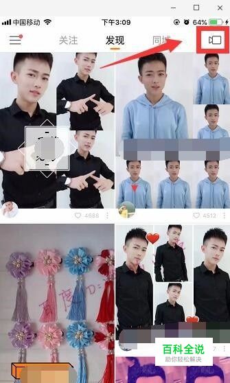 登录快手,点击录视频的摄像机图标。