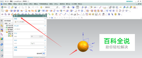在建模模块下,直接使用球命令,指定球体直径和中心点,生成一个球形实体。
