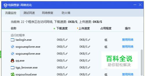 在流量监控界面中禁用LOL客户端登录界面的网络连接,如图所示: