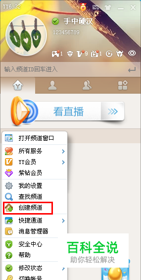 登录YY,点击创建自己的频道。