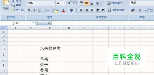 打开一个Excel的文件,输入一个简单的表格,比如水果的种类表。需要在单元格输入不同的水果名称数据,如下图所示。