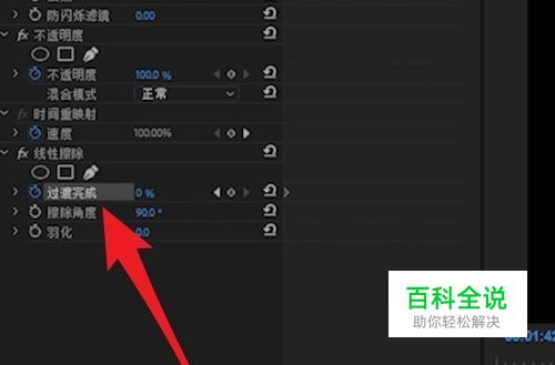 在左侧效果控件面板中将过渡完成设置打上关键帧。