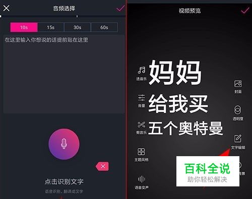 文字编辑页面,你可以自己给文字划分段落,调整每段文字的内容,按住文本上下拖动,还可以调整它们出现的时间。 文字编辑页面,文字的大小,颜色,字体,粗细,都可以一键修改,应用全部按钮,会将调整好的格式,应用给所有段落的文字。