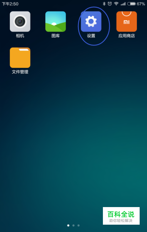小米手机设置完成,即可进入系统主界面。找到手机的“设置”菜单,点击进入: