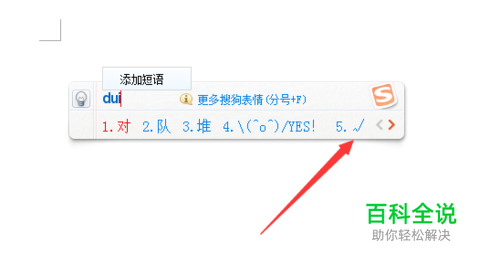 先说如何输入对号√。打开搜狗输入法,切换到中文输入法,在文档里输入拼音“dui”,就会出现一个选择框,选择5就行了。