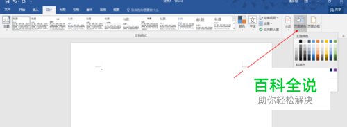 打开Word,点击设计(其它版本的在”页面布局“),接着在右上角点击”页面颜色“的倒三角,最后选择主题颜色,效果如下图所示