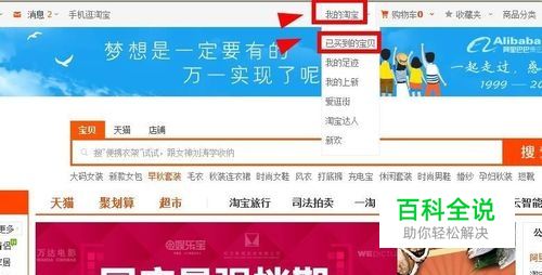 点击“我的淘宝”中的"已买到宝贝";