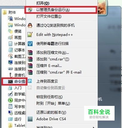 1.以管理员身份进入命名提示符(开始,所有程序,附件,命令提示符)