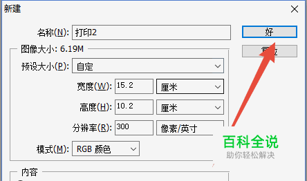 打开PS,Ctrl+N,新建一个文件,命名为打印2 。