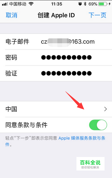 之后如图所示,依次在注册表上填写电子邮箱,设置密码,国家选为中国,并且点击同意注册条款。