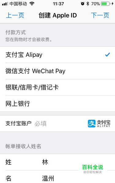 之后,根据个人情况选择“付款方式”设置付款信息,在使用绑定的手机验证一下,点击“下一页”按钮。
