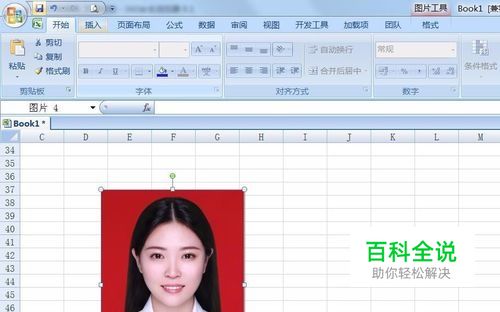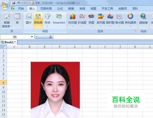 打开excel 2007 选择“插入”——“图片”,插入需要更换背景的证件照,如图所示: