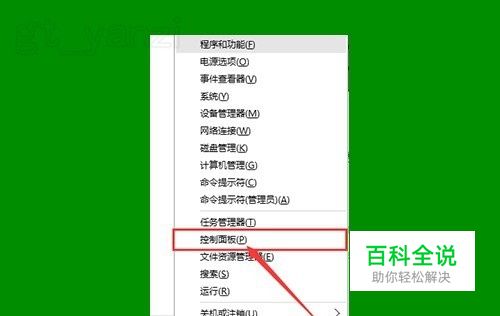 右击开始菜单,选择控制面板,打开控制面板窗口。
