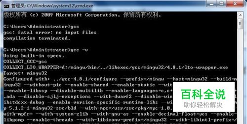 最后在CMD中输入gcc -v,看看有没有安装成功,如果出现一下画面说明安装成功