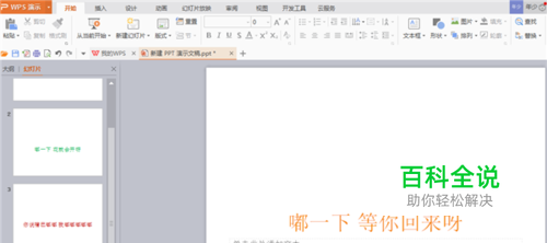 打开电脑上的PPT,在PPT中插入好我们要制作文字视频的幻灯片,并在每个幻灯片中输入文字,设定好文字大小和颜色。