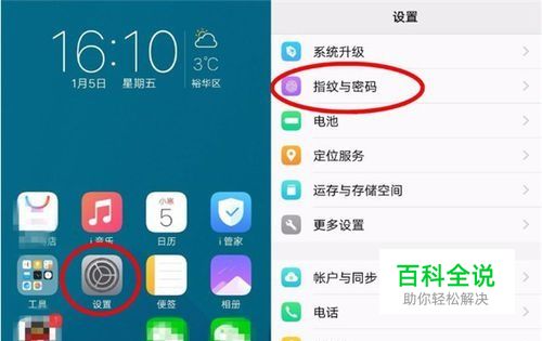 打开手机的【设置】,进入设置菜单后再找到【指纹与密码】选项并打开。