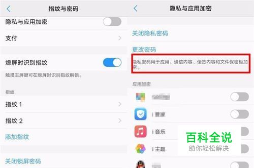 点击【隐私与应用加密】,然后就可以看到应用列表,每个应用的右侧都有一个开关,需要加密哪个只要把开关打开就可以了。