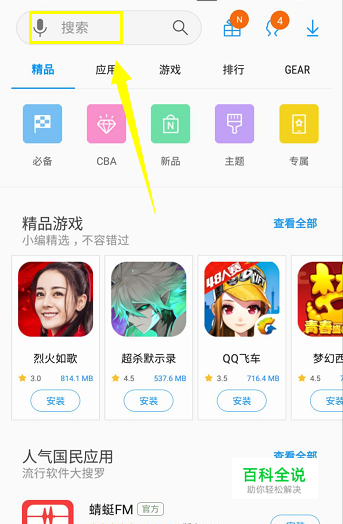 下载其它服务器的绝地求生,我们需要借助加速器,首先进入手机应用商店,点击搜索,如下图所示