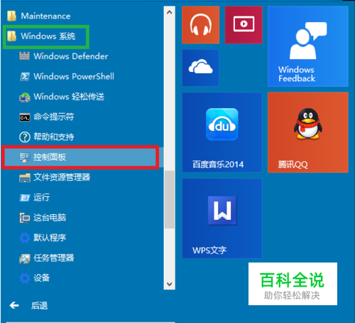 点击“Windows”键进入“开始”菜单,点击“所有应用”,在所有应用菜单里点击“Windows系统”里的“控制面板”