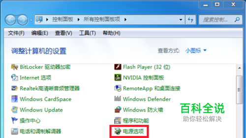 进入到控制面板界面后找到【电源选项】并点击打开电源设置。
