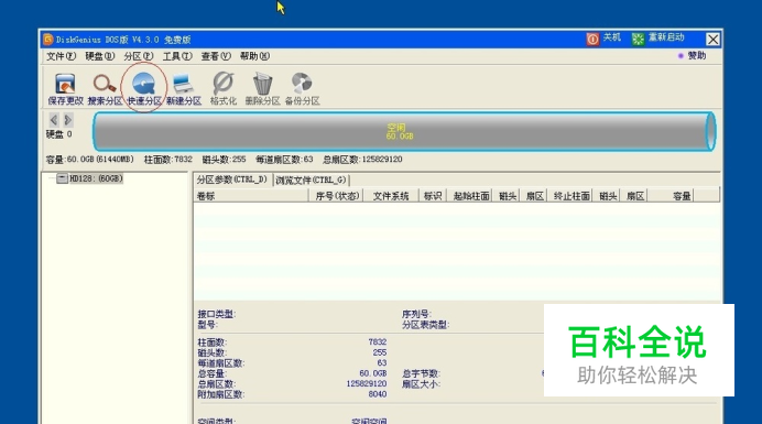 二、进入分区软件主介面,看到硬盘是空白的,没有任何分区信息,如下图片