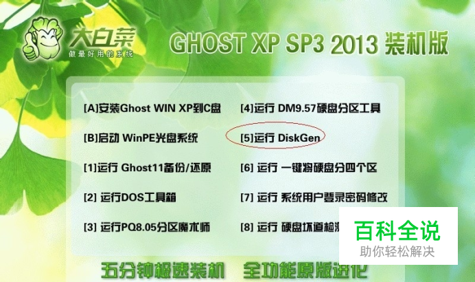 有关于U盘如何进入DISKGEN工具,您可以参考这篇大白菜U盘启动工具文章(下面参考资料链接1)