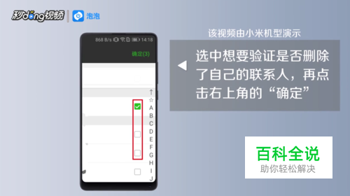 选中想要验证是否删除了自己的联系人,再点击右上角的“确定”
