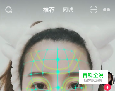 在拍摄界面,会自动应用测脸型的道具。将面部在屏幕内后,面部会出现网状的动态特效,可以查看自己的五官是否超出了特效。如果恰到好处,说明五官很标准,人也很帅气哦。