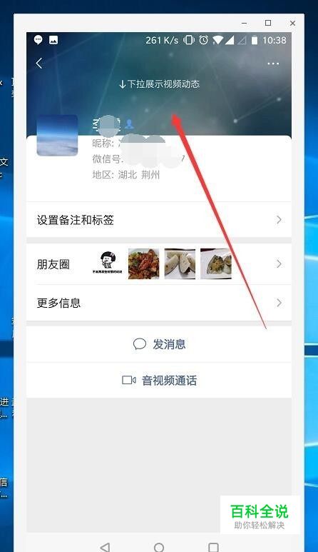 然后我们点开这个人的页面,可以在首页中有一个下拉展示视频动态的提示,此时按住手机向下滑动,直到视频出现就停止