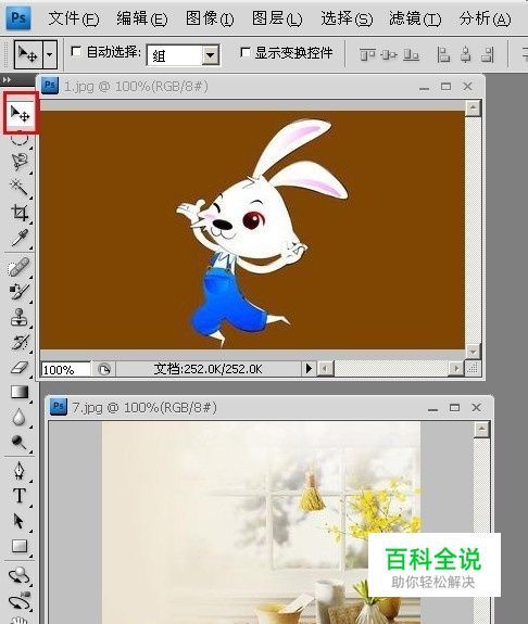 第六步:点击<文件>-><打开>想要换取的背景图片,点击移动工具(图中的红色标志)即可完成图片换背景